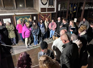 The interior of St Mary’s has several points of interest including fine examples of 16th century chantry chapels, one of the largest Medieval monumental brasses in the country, and the earliest treasury in an English Parish Church.