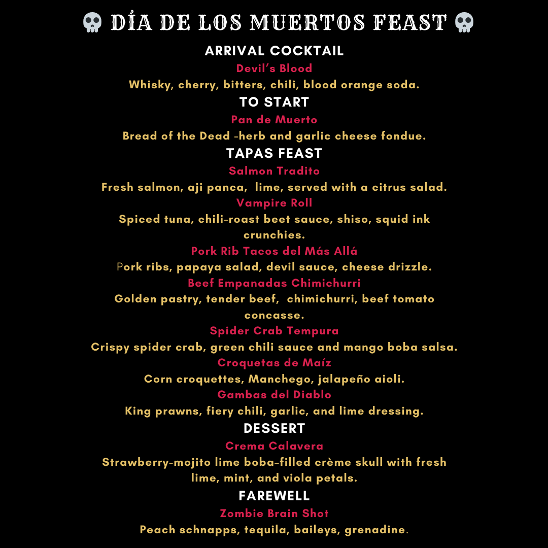 Sunday 2nd November - Día de los Muertos Feast - Seating Times 6pm · 6.30pm, 8pm,·8.30pm