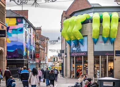 Theatre Royal, Bravissimo on Bridlesmith Gate, Victoria Centre – at the main entrance and at the Clock Tower entrance – The Cornerhouse, Nottingham Castle and Binks Yard. Look up, you really won’t be able to miss them!