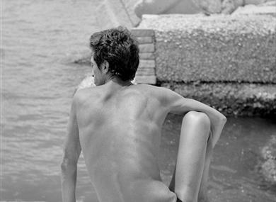 Lanterna “Beach” is a long-term project (2015-2022) that documents a community of male bathers in a town in Southern Italy, where he was born and raised, before leaving his country. The work explores the relationship between this peculiar community and the nature of the Pier where they sunbathe and rendezvous from Summer to Winter.