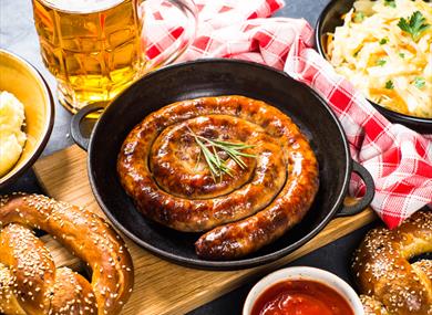 Prepare your taste buds for a journey of flavour as the world-renowned Paulaner takes centre stage. Savour the rich and satisfying taste of these masterfully crafted brews that have been celebrated for centuries. From pretzels as soft as clouds to hearty sausages and more, our Bavarian food selection promises to tantalise your taste buds. Get dressed up in traditional lederhosen and get the perfect photo opportunity with one of our fabulous props.