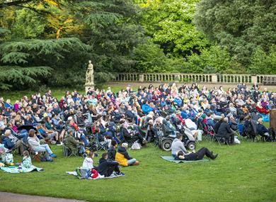 Gates open one hour before the performance starts. Please bring rugs or low-back seating. Performances will go ahead in all but the worst weather. The stage is located in the Formal Gardens at Wollaton Hall & Deer Park: