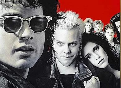 Teenage brothers Michael (Jason Patric) and Sam (Corey Haim) move with their mother (Dianne Wiest) to a small town in northern California. While the younger Sam meets a pair of kindred spirits in geeky comic-book nerds Edward (Corey Feldman) and Alan (Jamison Newlander), the angst-ridden Michael soon falls for Star (Jami Gertz) -- who turns out to be in thrall to David (Kiefer Sutherland), leader of a local gang of vampires. Sam and his new friends must save Michael and Star from the undead.