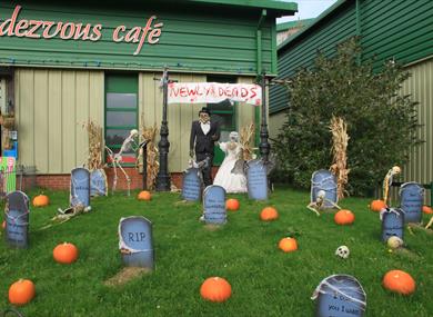 Don't miss Grizelda the witch in the Witch Wagon for humorous, mild scares. Dive into our Halloween wonderland with tricks, treats, and a pumpkin patch open from October 4th. Discover more exciting Halloween activities on-site!